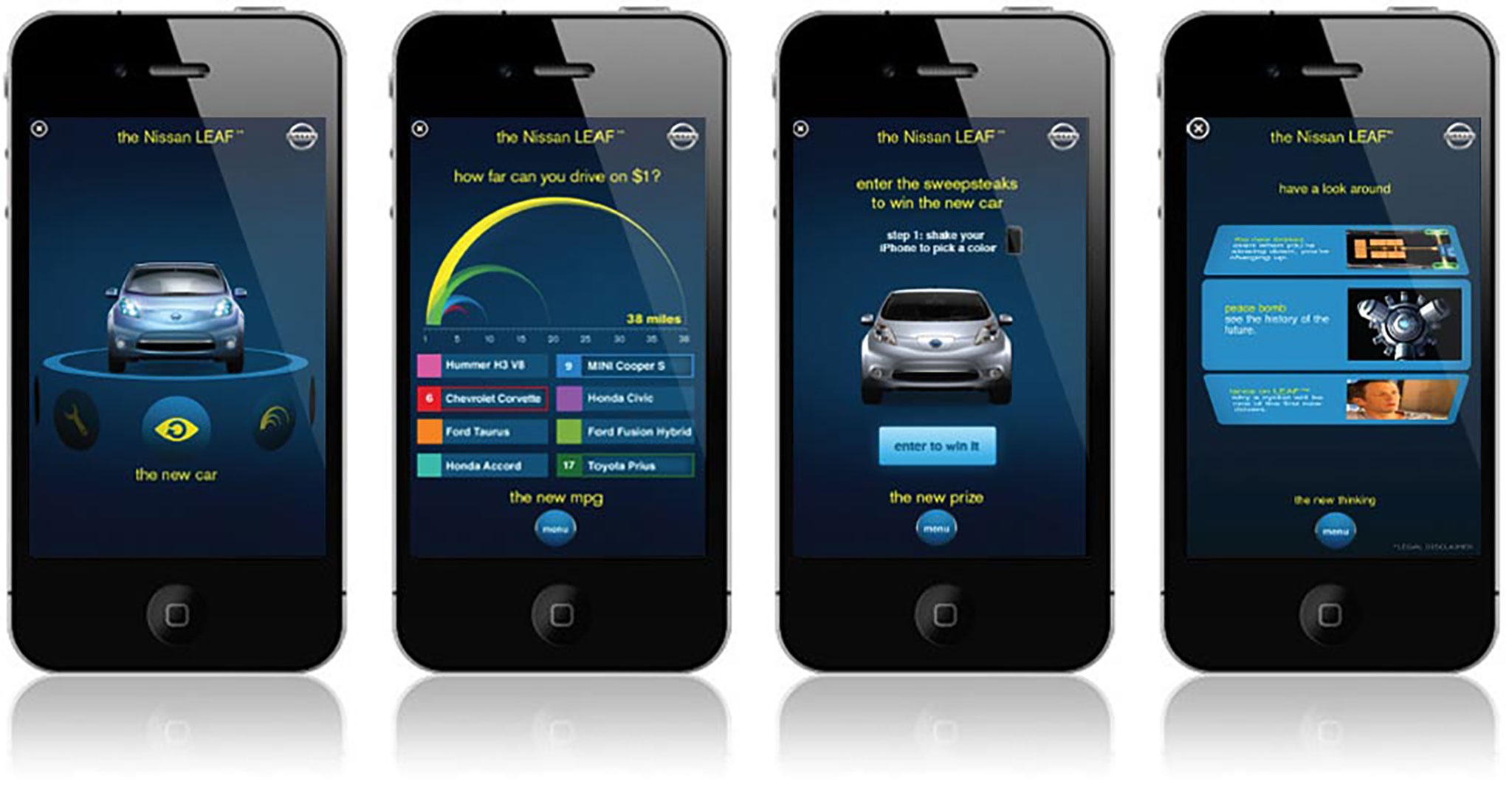 Nissan iAd is one of the first iAds ever created launching Nissan’s new fully-electric LEAF vehicle that we created while design director at Chiat/Day. The ad takes advantage of nearly everything iAds and iPhone have to offer, creating an advertisement that lives directly inside the app. The LEAF is the world’s first mass-production, zero-emission car. iAds will help Nissan continue to reach the early adopters and target customers who placed more than 15,000 reservations for the Nissan LEAF.