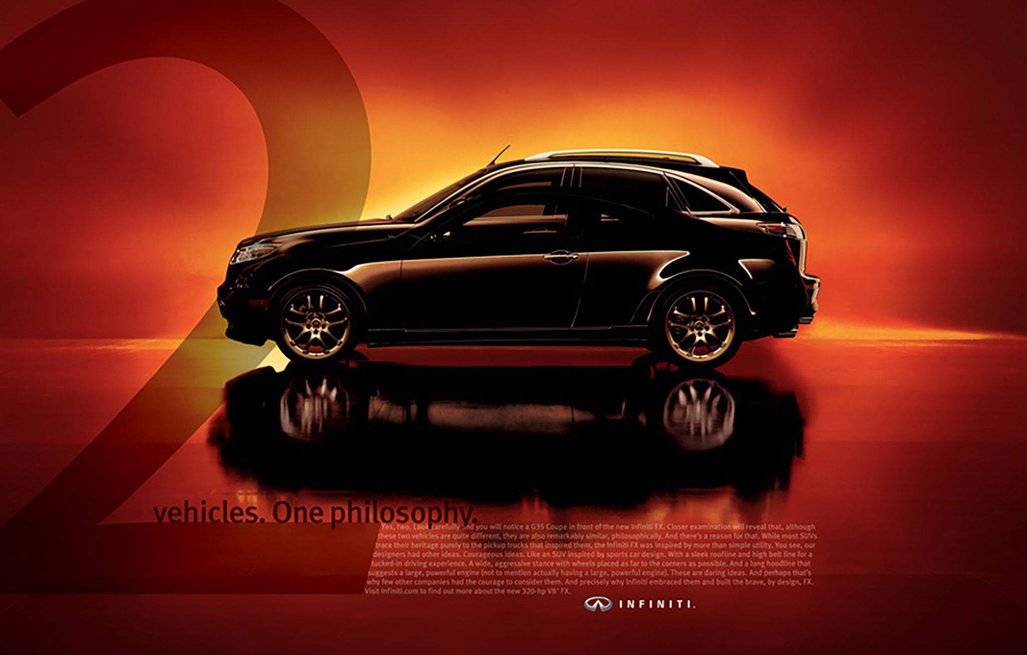 While I was design director at ChiatDay, one of my favorite projects was designing these print ads for Infiniti to not look like ads at all. In order to appeal to car enthusiasts, Infiniti wanted to do a campaign that did a deeper dive into the nuances that car enthusiasts get into... More than just sheet metal. More than just horsepower.